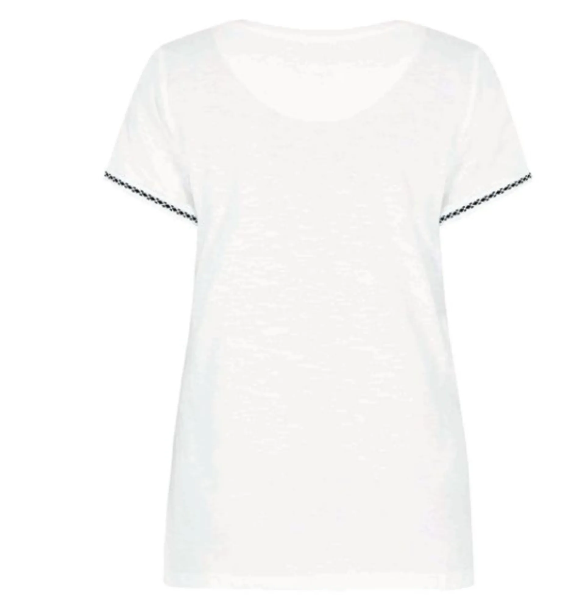 The Teya organic cotton T-Shirt has a subtle slub texture for that worn in look, in a clasic crew neck shape, and finished with fun, turn up embroidered tape sleeves. In a wide range of colours you can team these with so many pieces from our latest range for a great mix and match wardrobe.
